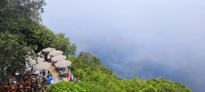 在面包山上可以看到我们住的海滩。不过因为有云雾,所以海滩时隐时现的如同海市蜃楼。