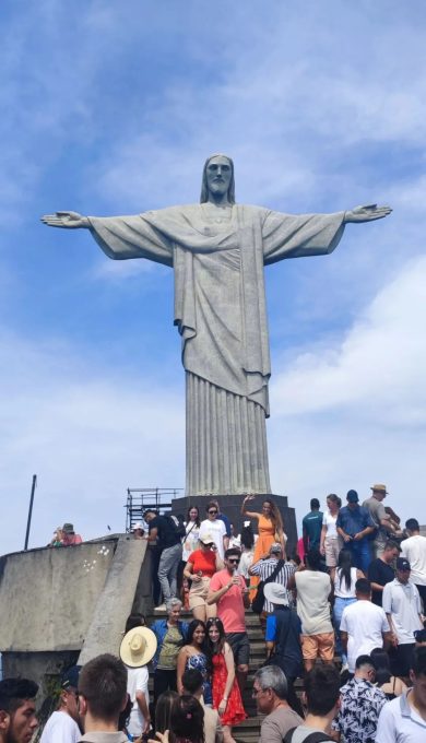 很多人都是站在台阶上,模仿雕塑的姿势拍照,好像在和耶稣一样张开双臂拥抱世界。