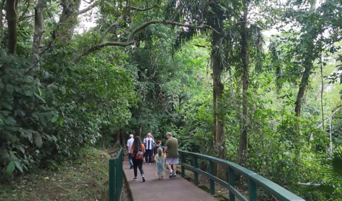 其实伊瓜苏公园很大,从公园门口到瀑布是需要坐里面的班车大概30分钟才能到达。沿途有很多雨林徒步探险小路。如果喜欢徒步探险旅游的人,伊瓜苏公园就可以玩儿一整天。所以安排的时间最好是两天。还可以逛逛伊瓜苏市中心。我们因为没有时间,所以伊瓜苏市中心没有去。