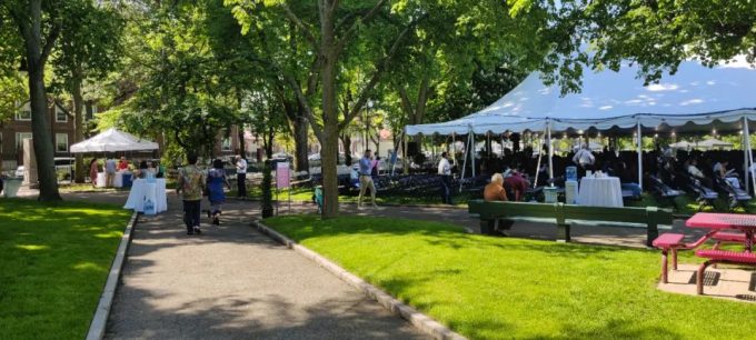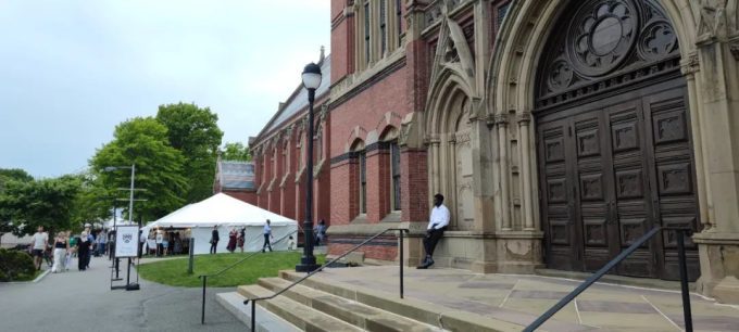 我5月21日下午到达的时候就发现整个哈佛校园周围搭起来很多白色的大帐篷。很多活动都需要在这样的大帐篷里面举行。