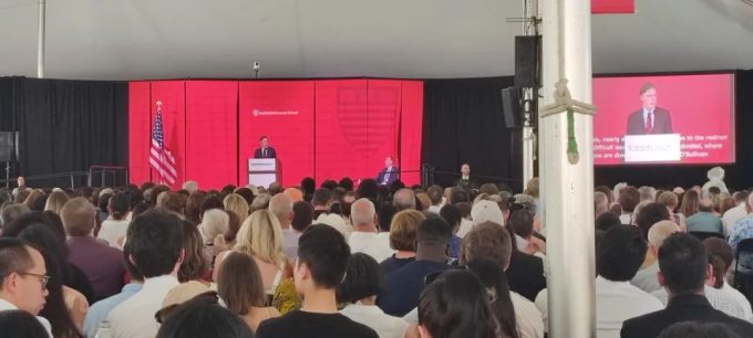 上午的活动就是学生代表讲话,颁发优秀学生的奖状等等,中午12点结束。下午1点半开始是美国驻华大使伯恩斯讲话,到3点结束。我下午去晚了,棚子里面已经没有座位了。我只能站在会场最后面听了两耳朵伯恩斯的毕业演讲。顺便拍了几张我站在后面能够看到的会场内部的场景