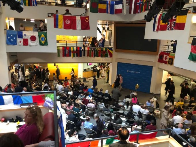 22号早上8点是哈佛各个学院自己的毕业典礼。我和女儿室友的父母一起赶到了肯尼迪学院的会场。肯尼迪学院的主会场是在教学大楼后面的肯尼迪公园里面。