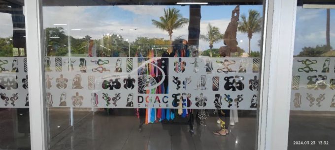 这是机场玻璃上的防撞贴纸,很有复活节岛的特点。