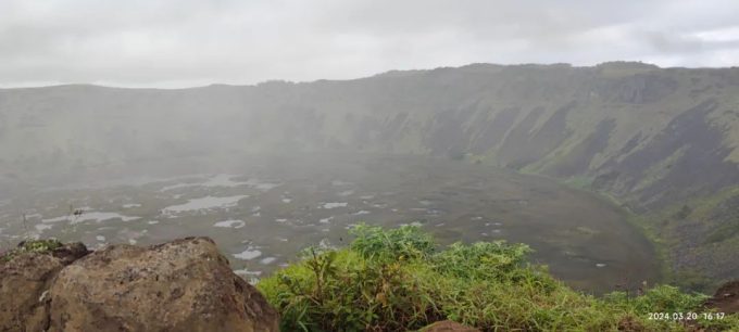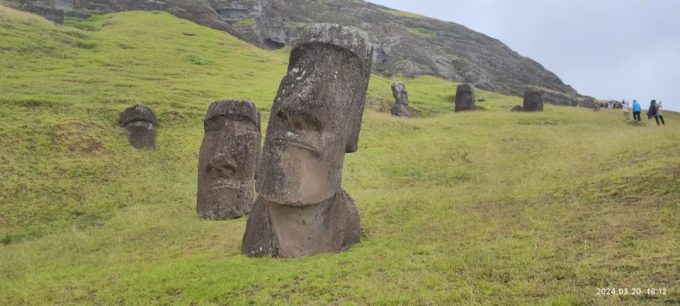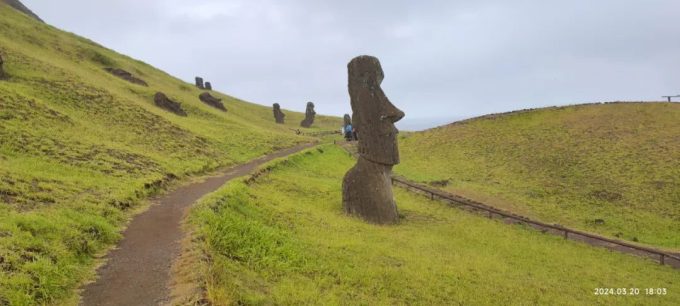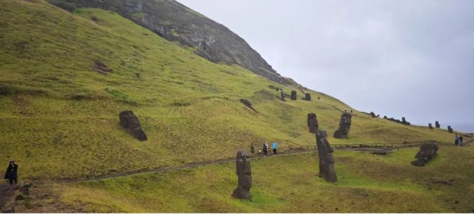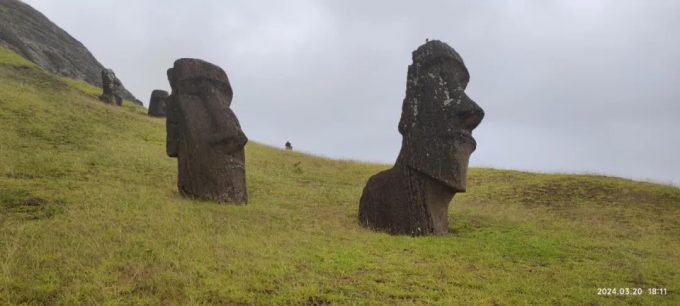 从这里离开到达下一个景点Rano Raraku 采石场的时候,雨又慢慢地停了。感觉复活节岛的天就像孩子的脸,一天变三变。