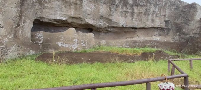 我的问题就是当初为什么不把这些摩艾搬到海边呢?为什么要在这里挖这么深埋在这里?而且埋在地下的部分居然还有雕刻和很多符号。这些雕刻的符号什么意思?是给谁看的呢?是不是现在我看到的这些没有被挖掘的摩艾下面都是埋藏的这么深?真的是太不可思议了。