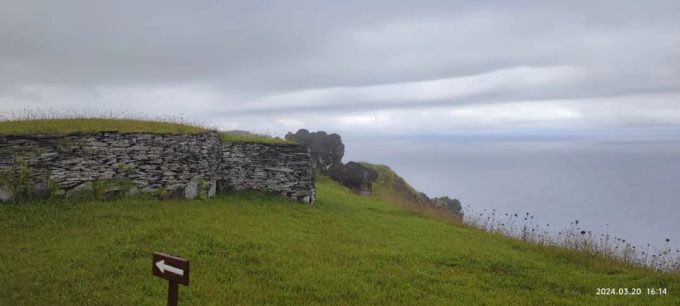 Orongo石头村由低矮的草皮覆盖的无窗圆墙建筑组成,在称为Rano Kau的大型火山口的旁边。是当年这里的一个礼仪中心,也是一个躲避场所。
