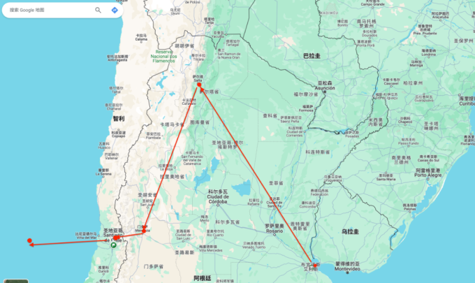 在做旅游攻略的时候,我看了很多人在这两个国家旅游的经验和介绍。我最后选择了我感兴趣的几个项目:1、从萨尔塔自驾去海拔不算高的七色山区和阿根廷最大的盐田。2、从门多萨坐7个小时的大巴穿越安第斯山脉跨境从阿根廷到达智利的圣地亚哥。这条线很多老外推荐,因为沿途风光无限。3、去世界神秘奇观之一大量摩艾竖立的地方复活节岛。