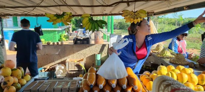 离开了鳄鱼滩我们一天的活动就算结束了。在归途中遇到一个路边卖水果的小摊。导游让司机停车,说这里的水果便宜,有喜欢吃水果的可以在这里买。我们大家都下车去看古巴的农村水果摊都有什么水果,多少钱。