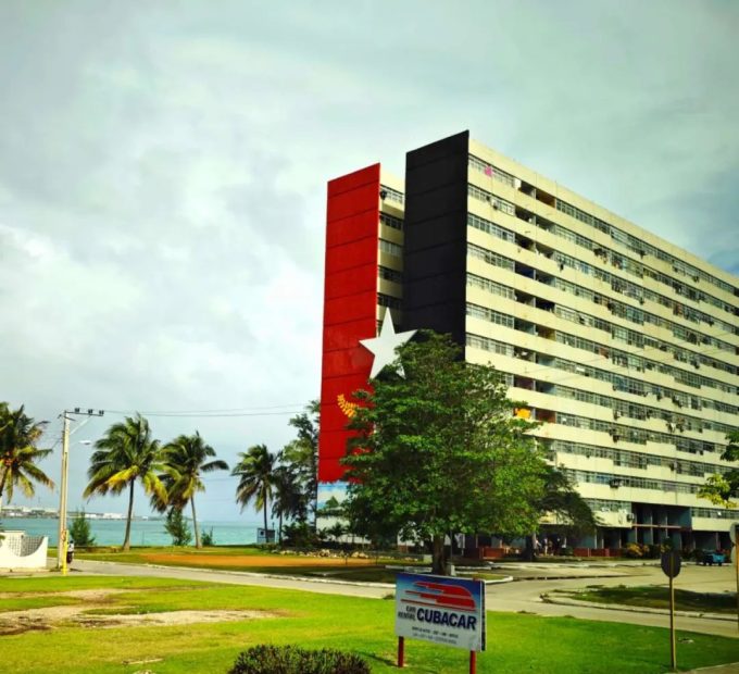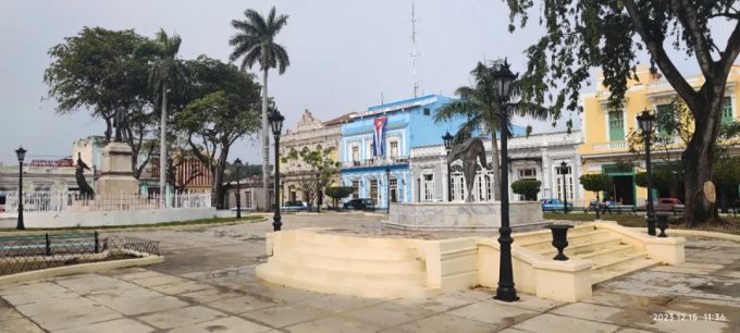 这是马坦萨斯省政府广场。悬挂国旗的蓝色建筑是省立图书馆。