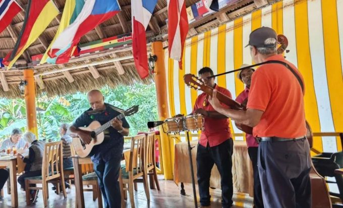 至于这龙虾餐味道如何?我只能说古巴人民真的已经尽力了。因为对于大多数月薪40美元的古巴人民来说,这顿15美元的餐食大多数人都吃不起。看看这个餐厅里面悬挂的各国国旗就知道这里是针对外国游客的旅行餐厅。这里的古巴饮料都是3美元一听。