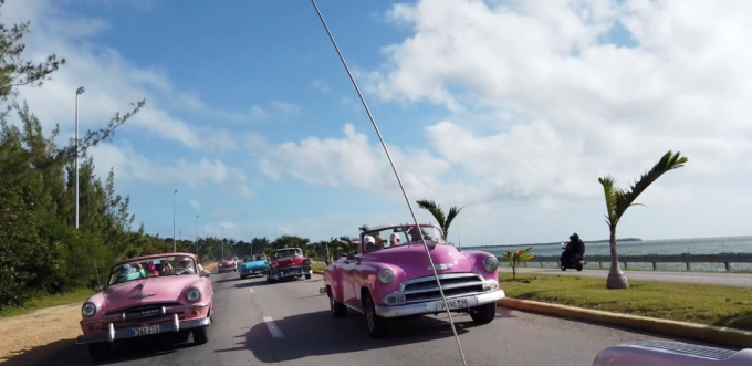 一路上这10辆五颜六色的老爷车队,兜着海风,你追我赶的相互飙车,超过其他车的人激动的欢呼着,那感觉别提多爽了。我的脑海里面自动播放周杰伦的《Mojito》,一种自己身在南美大片中的感觉。