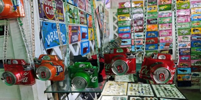这是让我感情特别复杂的手工艺品。这是古巴人民纯手工制品,大家一眼就能看出来这相机造型是用可口可乐,芬达和雪碧易拉罐做成的。这个工艺品在古巴价格不便宜的原因是因为这些饮料在古巴消失已经几十年了。自从美国对古巴实行经济封锁,古巴就再也喝不到这些饮料了。所以这些易拉罐也成为了他们的古董。他们用曾经保存的这些易拉罐做成了相机,不但展示了他们的创意,也诉说了古巴国家的曾经和现在的经历。