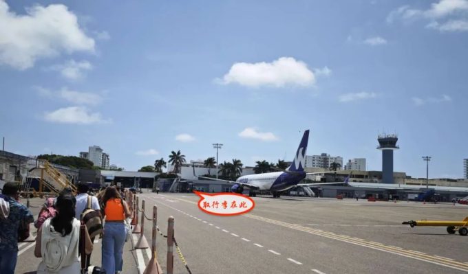 因为城市不大,所以机场也很小,就是一排平房,下飞机需要自己走到里面只有一个运送行李的台子那里领取行李。当然登机是在旁边的另外一个地方。空间比领行李的地方还是大一些的。不过登机也是需要自己走到飞机停的地方去登机的。如果有人去过柬埔寨的暹粒。这里的机场比暹粒的还要小。