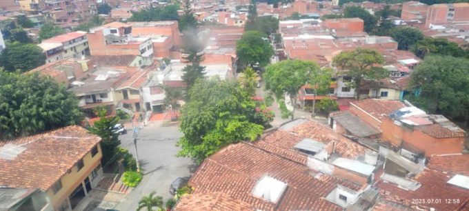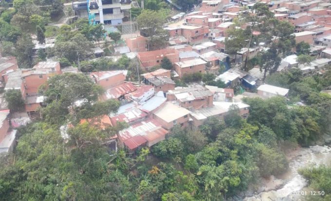 上面照片里面房屋的顶部使用的是砖瓦,下图照片里面房屋顶部用的是铁皮或者塑料板。其实这种景象是一片连着一片的,挺震撼的。感觉这里怎么这么多穷人呀。当缆车经过这个区域的时候,我们听到了下面很大声音播放着哥伦比亚节奏感强烈的音乐。一个接着一个,似乎下面的人到处都在开party似的。可以想象如果阳光暴晒,铁皮屋顶的房子里面会有多闷热。