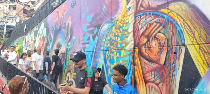 这里曾经是贫民窟,是充斥着毒品,凶杀,犯罪的地方,是罪恶之都中罪恶的来源地。也是后来大毒枭巴勃罗投资改造的地方。现在这里已经不再贫穷,到处是美丽的涂鸦,各种商店,酒吧,餐厅。已经成为了一个年轻人和游客喜欢拍照,聚会的地方。我们去的时候,很多酒吧里面年轻人在集体喝着小酒唱着歌。