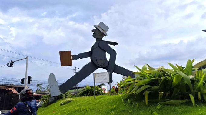 这个标志树立在从佩雷拉机场出来转向去萨兰托国家公路的旁边。感觉是从机场出来的business man 都很busy,下飞机就为工作狂奔的样子。
