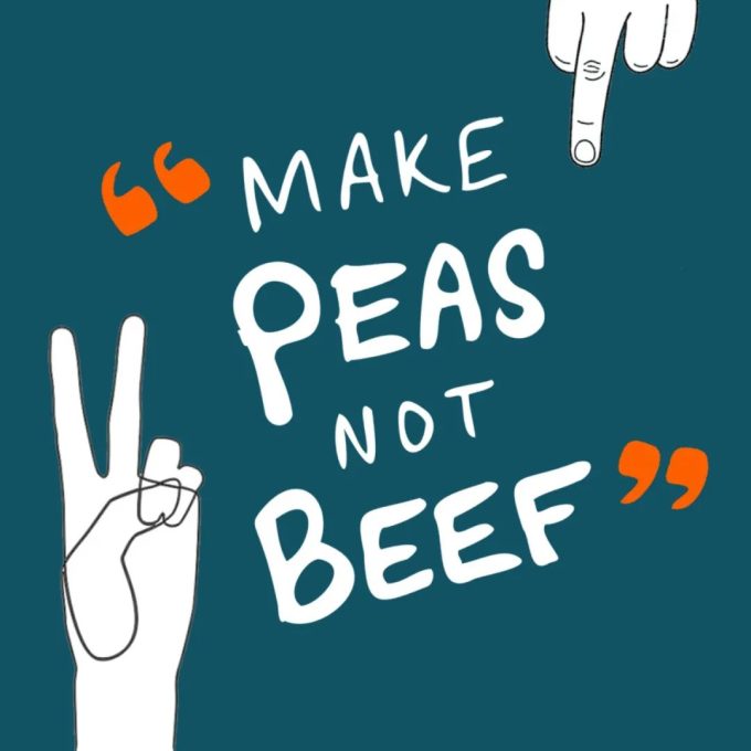 因为她从小生活在加拿大,所以她的节目针对的是说英语的观众。她给自己的节目起了一个含有双重含义的名字——“make peas not beef”。peas 是豆子,代表素食蛋白。而peas 的发音与英文的和平peace 发音一样。而beef 是牛肉,属于肉类蛋白,在英文也有冲突的意思。所以她节目的名称一方面传递的是要这个时间和平不要冲突,不论什么观点,求同存异的讨论。另一方面表达的是他们主张少吃肉多吃素的观点。