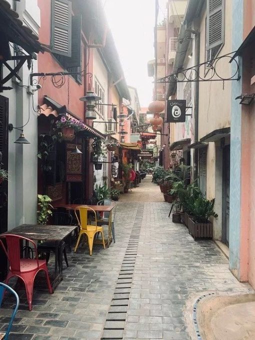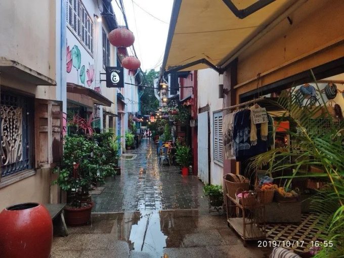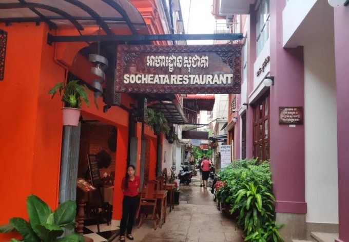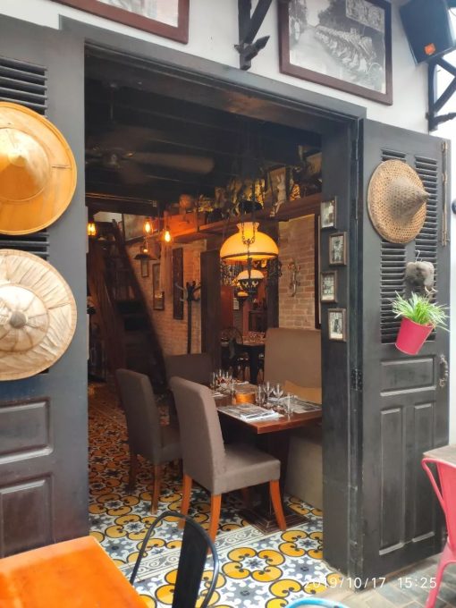 我们做按摩的时候,我从网上找到了一个好评的法式餐厅,我们决定去吃一次柬埔寨的法餐做中晚餐。我们按照导航来到了上图这个小巷口。我当时还奇怪,这个法式餐厅怎么会在这么一个破巷子里面。当我们走进去,我被里面的景色惊呆了。