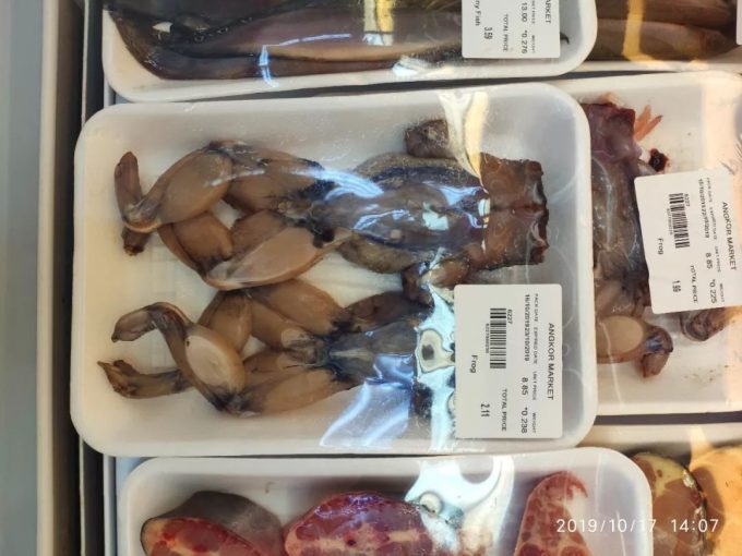 这是我拍的超市买生鲜的冰箱里面的收拾干净的青蛙。摆的姿势都是带有柬埔寨传统舞蹈常见舞姿。对比腿脚部舞姿图如下。