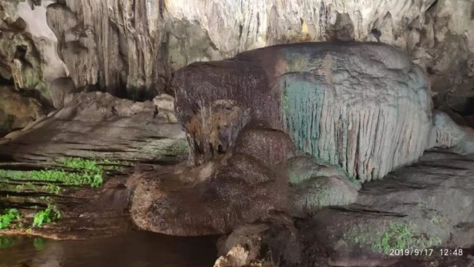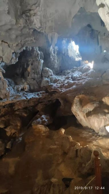 这个岩洞里面居然还有绿色植物生长。可能是因为那个上面的小洞口有阳光可以摄入的原因吧