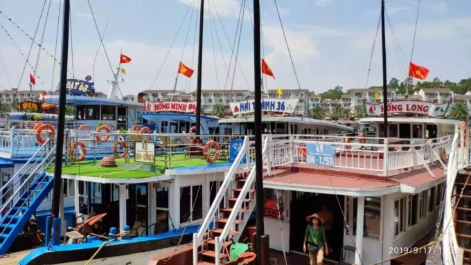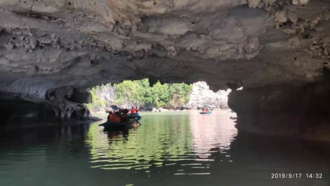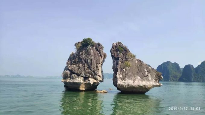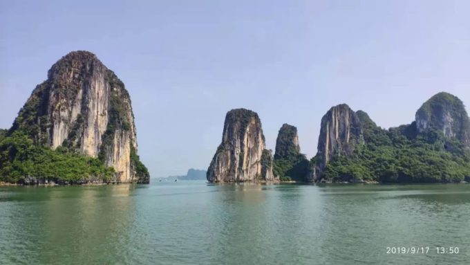 下龙湾和桂林都属于喀斯特地貌。区别在于桂林的水系是江水,下龙湾的水属于海水。而且下龙湾的这种地貌范围比桂林大。我们这次只去了一个3小时的小湾旅游。我们从网上找了一个私人导游——小范,一个会说中文,法语的越南小伙子。
