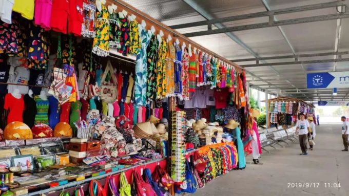 这是港口等候区的小商品市场,很多卖女性服装奥黛的地方。