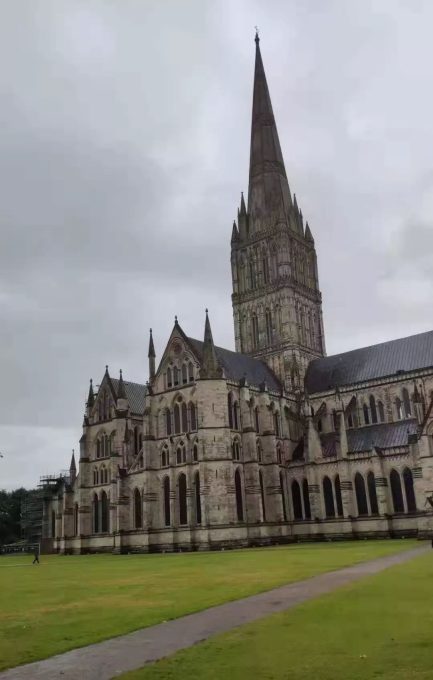 网上介绍索尔兹伯里大教堂是英国著名的天主教堂,13世纪早期哥特式建筑,历时38年建造而成,大教堂是英国最高的塔楼,并拥有四份“大宪章”中保存最完好的一份和欧洲最古老的机械塔钟。索尔兹伯里大教堂是历代朝圣之地。
