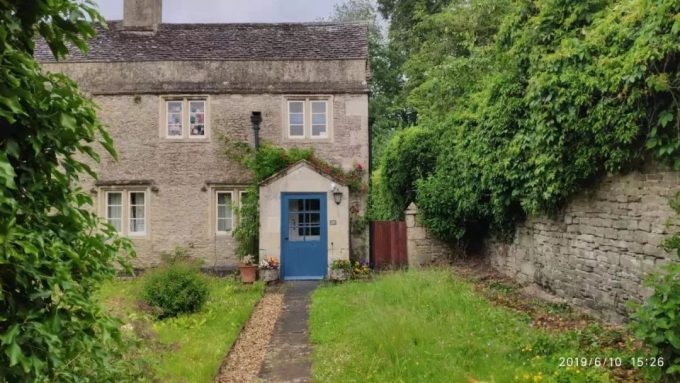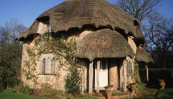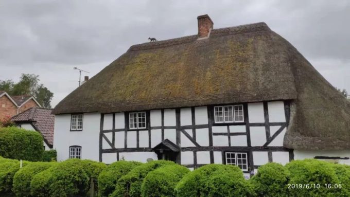 在我们从这里出来去下一个景点的路上,看到很多屋顶是圆形草顶的房子。就是下图这种老房子。导游说这个叫科茨沃尔德的地区有很多这种英国古老的建筑,当时我们因为车在行走,无法拍照,我就从网上找了一张照片。导游还讲了为什么当时要用草做屋顶的原因,我因为当时忙着从书本里面拿吃的东西,所以没有听清楚,也没有记住。贪吃耽误事儿呀。