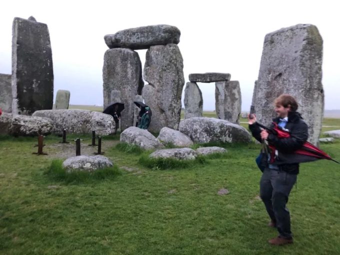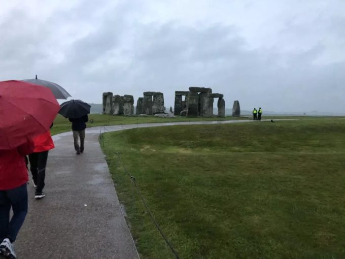 奇怪的是,我们下车的时候还觉得挺黑的,但是我们往巨石阵走的时候感觉越走越亮。那里没有灯光,天空乌云密布,下着大雨。然而巨石阵如同我的照片里面看到的一样清晰可见。完全不是我们在车上想象的黑黢黢什么都看不见。