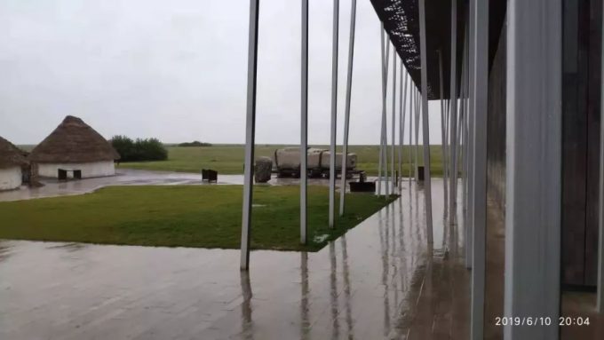 这是接待中心的院子,远处的大石头就是从巨石阵拉过来的。