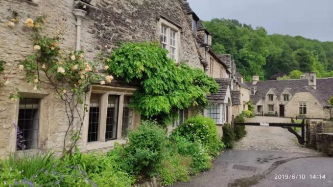 我们经过的第一个村庄是一个叫库姆堡(Castle combe) 的只有350个居民的小村庄。这个古老的村落建于14世纪,被称为是10个英国最美的村庄排名第一。这里曾经是世界著名导演斯皮尔伯格的影片《战马》的拍摄地。还有几部电影《狼人》《星尘》的取景地也是这里。