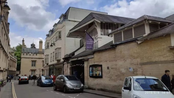 我的重点来了。注意这个紫色的旗子。这是牛津大学旁边一条小街上面的一个1774年就存在的叫covered的市场。里面买什么的都有。不过只有两个商店给我留下了非常深刻的印象。