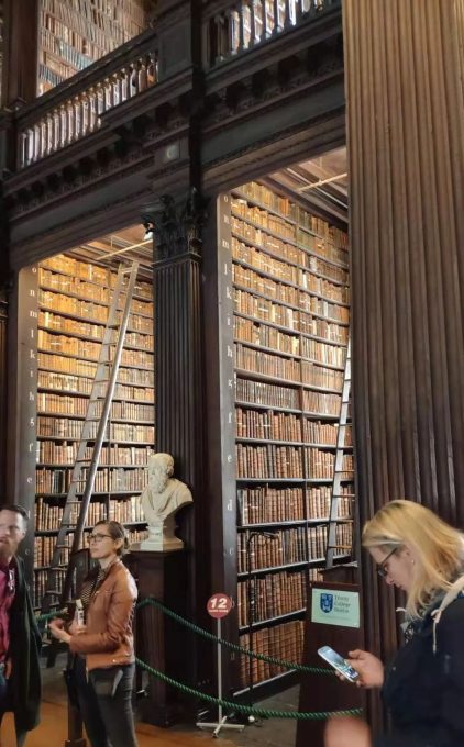 都柏林圣三一大学老图书馆(Long Room)久负盛名,藏有大量的珍贵著作,其中由修道士于9世纪完成的“凯尔特经典”(The Book of Kells)极为珍贵。所以我们肯定要去参观。