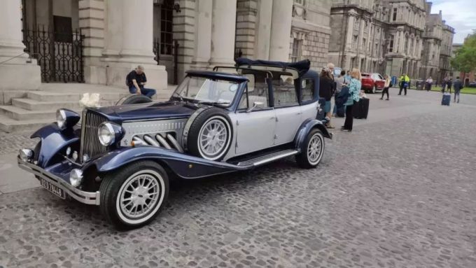 这是新人将要乘坐的超酷的老爷婚车。这车实在是太炫酷了,我禁不住前后左后一通拍。