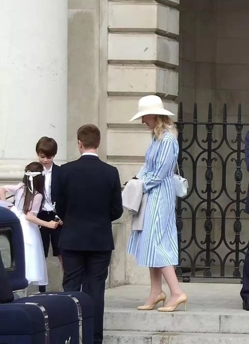 这位蓝色衣裙,米色高跟鞋优雅的女士和她美丽的侧影不容错过。
