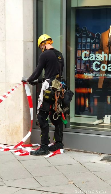 第二天早上,我们出来的时候,在路上看到一个全副武装正在认真干活的帅哥工人。为什么我用全副武装来形容?看下面的图就知道了。
