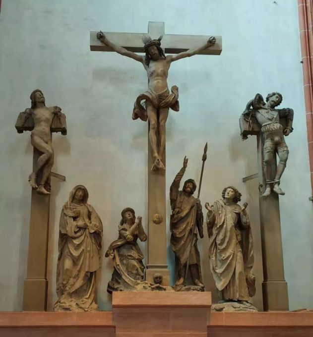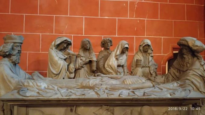比如上面这几张图片,把耶稣受难的过程都用雕塑淋漓尽致的体现了出来。似乎故事情节非常完整。我一方面感叹当时艺术家们精湛的工艺和对人物内心刻画的细腻,另一方面还体会到了一种无以言表内心的痛苦。