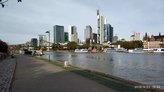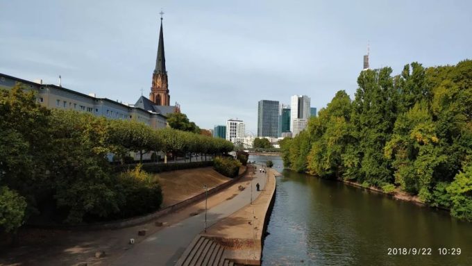 我们先去的法兰克福大桥。早上大桥周边可谓风景秀丽。
