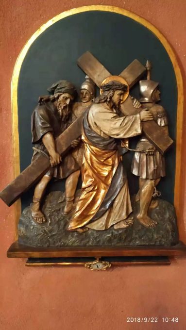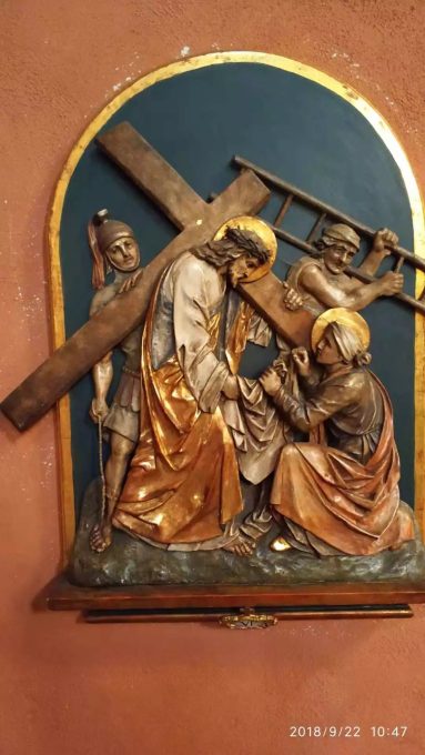 我当时站在耶稣被钉在十字架的雕塑前想了很多:很多教徒为了自己各种原因,问题无法解决,精神无法释然,总是想到耶稣这里来求助精神安慰,渴望耶稣给自己灵魂解脱的方法。但是在耶稣受难的时候,有谁替他承担过?为他解救过?如果他自己都不能解救自己,怎么可能会解救大众呢?