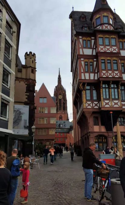 我们到达法兰克福的时间是下午。我们住在老城区的希尔顿。里面特别多的华人游客,刚进去的时候恍惚有一种回到国内的感觉。只有前台的德国服务员和大堂经理提醒我,我们还在德国。因为这个酒店距离旅游景点很近,所以游客特别多。