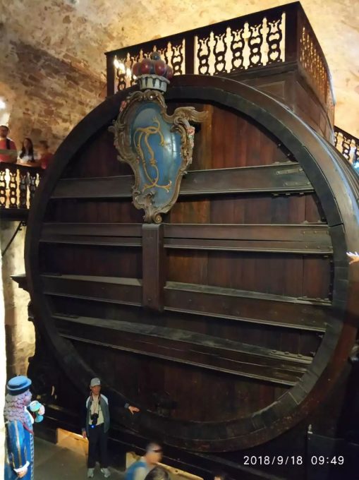 这是城堡里面巨大的酒桶。看这个下边站的人的身高和桶高的比例就知道这个酒桶有多高了。旁边有楼梯可以爬到酒桶的顶部。这个酒桶突显了德国人对酒的热爱。