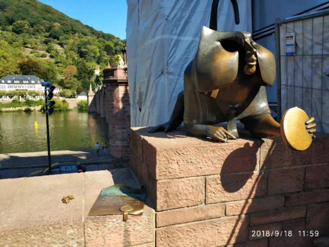 在海德堡老桥边上,有一个这样的可爱的猴子雕塑。
