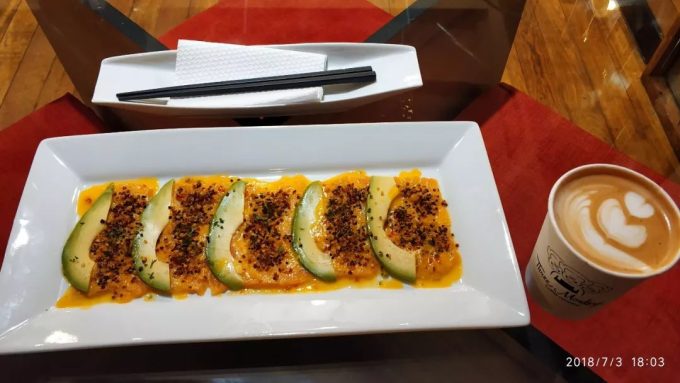 上图就是这个开胃菜,摆盘还不错。绿色的是牛油果,旁边的不知道是什么鱼片。我吃了一片就立刻问他们是否有白水,因为太咸了。我还点了一杯咖啡。我忘了秘鲁的咖啡难喝了,但是因为这个菜太咸,都掩盖了难喝的咖啡。每次在秘鲁喝咖啡都让我怀念哥伦比亚。毫不夸张的说,我是用两大杯白水加半杯咖啡把这个菜吃完的。真是开胃菜呀。
