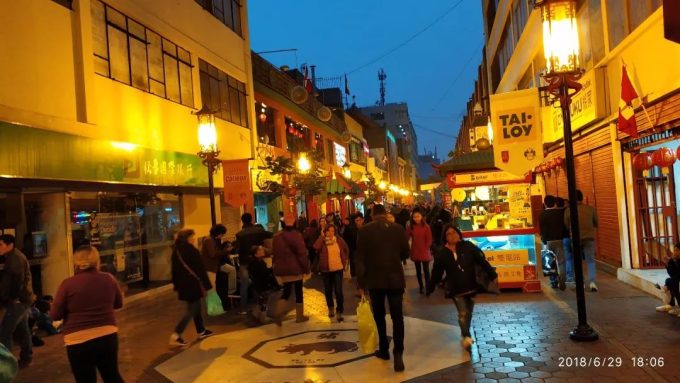 夜晚的唐人街还是很热闹的。可以看到很多华人模样的人和游客。顺便说一下,秘鲁有很多华人来旅游的。比哥伦比亚多得多。