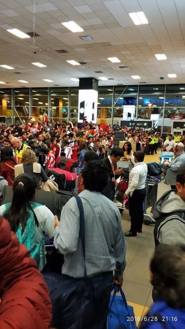 一出利马海关往接人打听一看吓我们一跳,以为出了什么大事。机场接人的大厅人山人海,口号声,鼓声此起彼伏,动静特别大。我们在里面的时候就能听到外面好像人声鼎沸。一打听,原来这天是秘鲁足球队世界杯被淘汰以后回国。他们下飞机的时间和我们应该是前后脚。秘鲁球迷聚集在机场唱歌敲鼓的迎接他们,以至于机场交通被严重堵塞,出租车进不来,打车十分困难。当我们好不容易等到一辆车的时候,司机也激动的停下来不停拍照和发what’s up 给他们的同伴报道机场实况。当我们开上机场路的时候才发现,路的两边都是人,大概有好几公里。茶茶说,估计利马半个城市的人都跑来列队迎接虽败犹荣的秘鲁足球队了。