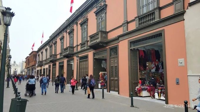 我先上一个利马老城的地标圣马丁广场。到了这里就会看到有一条步行街,人群都在往那里走,经常旅游的人一看就明白,那里一定是主要景点所在方向,只要跟着人群走就可以了。跟着人群走穿过繁华的步行街都可以到著名的利马大广场(也叫武器广场)。