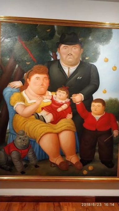 这两幅画里面是画家画的自己的一家人。男人是画家,这个胖女人是她的太太,也是他的模特。