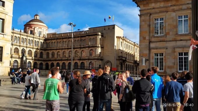 这是另一天晴天拍摄的,当时我们跟了一个free tour 的导游。这些入镜的人是和我们一个旅游团的。这里的游客大多数来自欧洲、北美和南美。整个哥伦比亚我旅游下来,几乎看不到什么亚洲人,连喜欢旅游的日本人都看不到。偶尔可以看到几个韩国人。